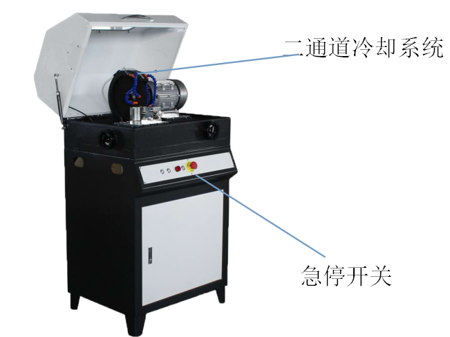 該機是采用雙罩殼全封閉結構和快速夾緊機構。可保證在絕對安全狀態下進行切割試樣,該機裝置有前、后、左、右拖板試樣的厚薄可任意調整,進給速度可操控。