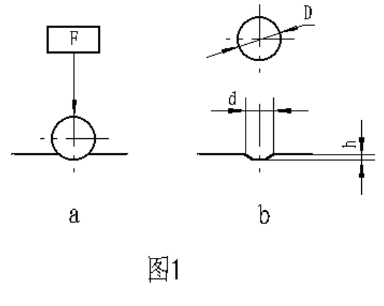 金屬布氏硬度試驗系采用一定直徑硬質合金球,以規(guī)定試驗力壓入被測材料表面(圖1a)按規(guī)定保持時間后,卸除試驗力,(圖1b)測量試樣表面的壓痕直徑,以計算出布氏硬度,并以下式計算之: