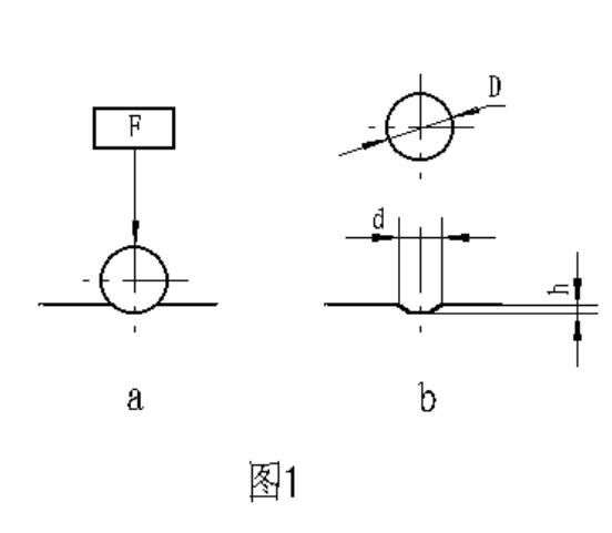 金屬布氏硬度試驗系采用一定直徑硬質合金球,以規定試驗力壓入被測材料表面(圖1a)按規定保持時間后,卸除試驗力,(圖1b)測量試樣表面的壓痕直徑,以計算出布氏硬度,并以下式計算之: